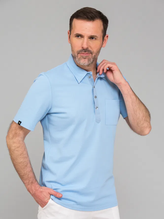 Muška medicinska bluza Kamil u polo stilu nudi spoj profesionalnog izgleda i svakodnevne udobnosti. I