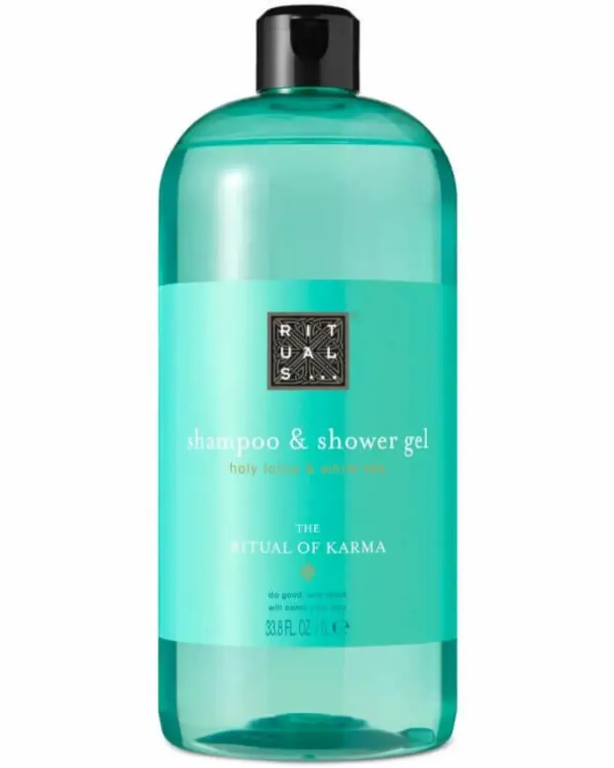 Rituals Karma šampon za kosu i tijelo (1000 ml) nježno čisti, hidratizira i osvježava, uz miris lotosa i bijelog čaja.